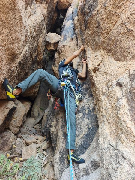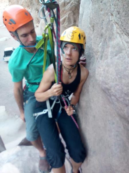 День 1: учимся самостоятельно устанавливать точки страховки на скалу – так называемые закладки/ френды/ гексы, к которым потом будет крепиться страховочная веревка.